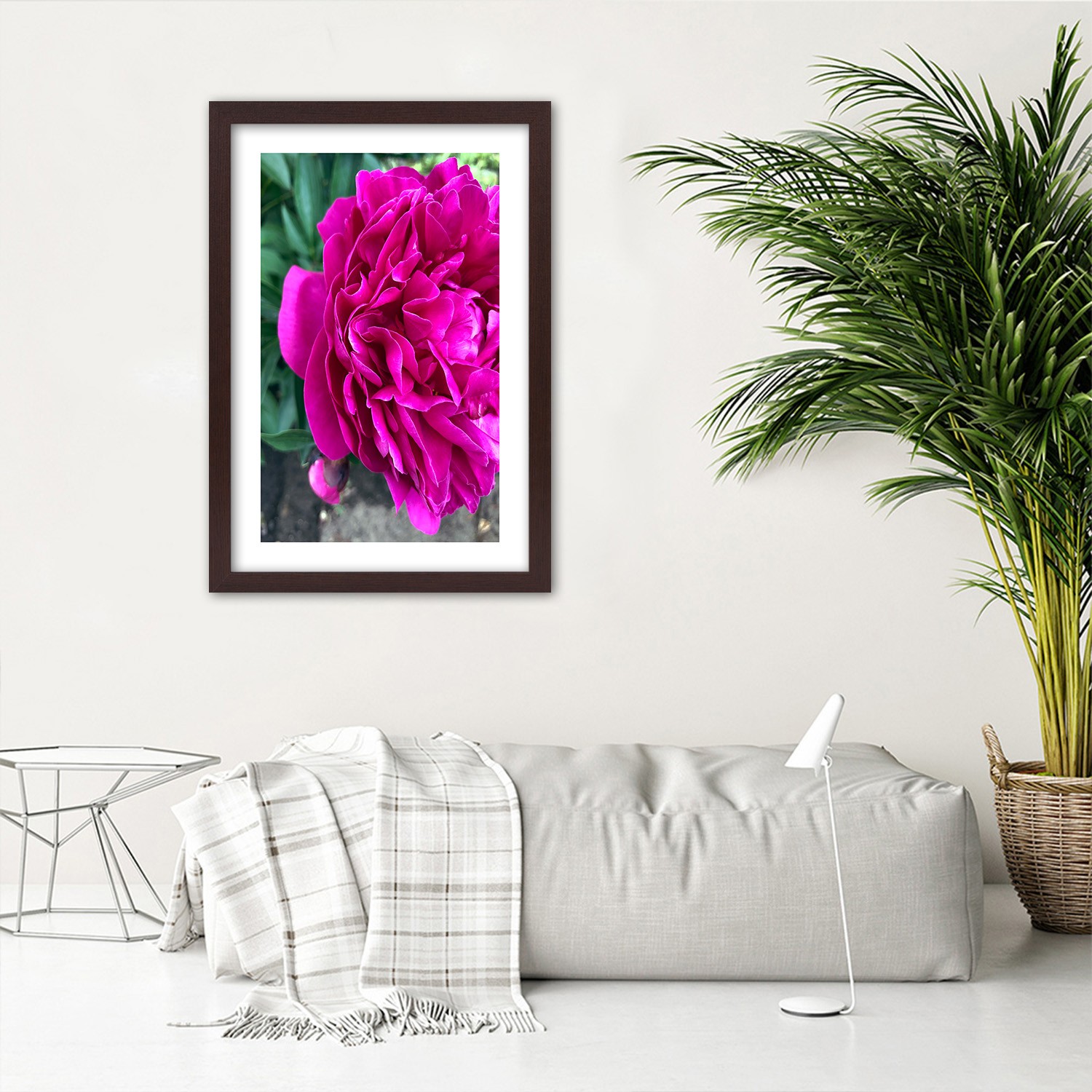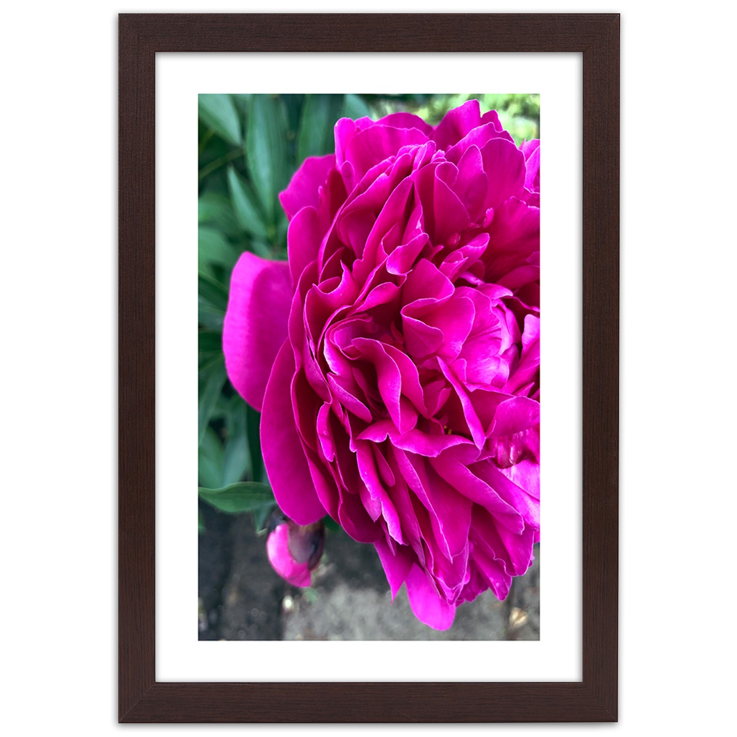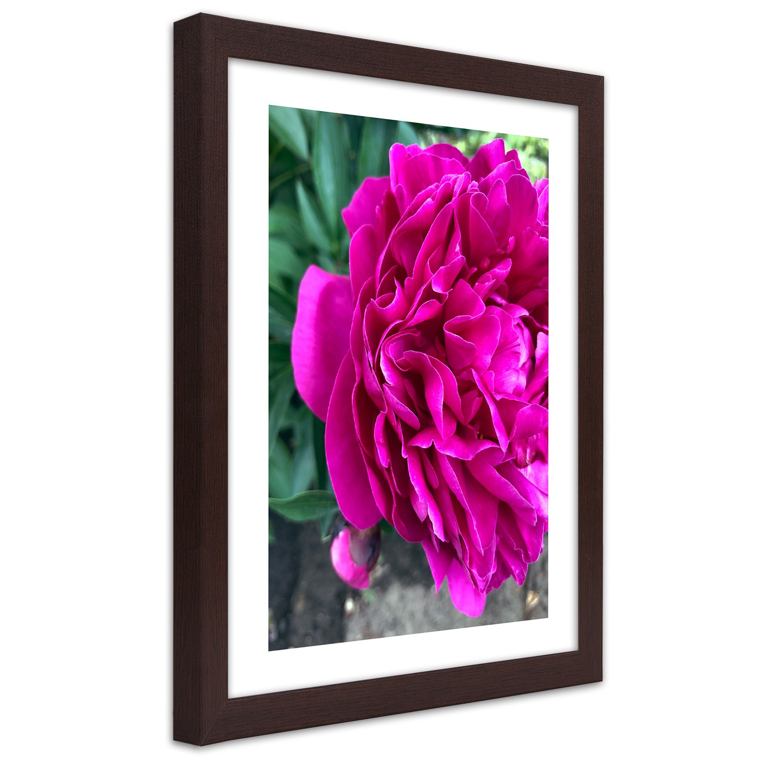 Picture in brown frame, Pink large flower
