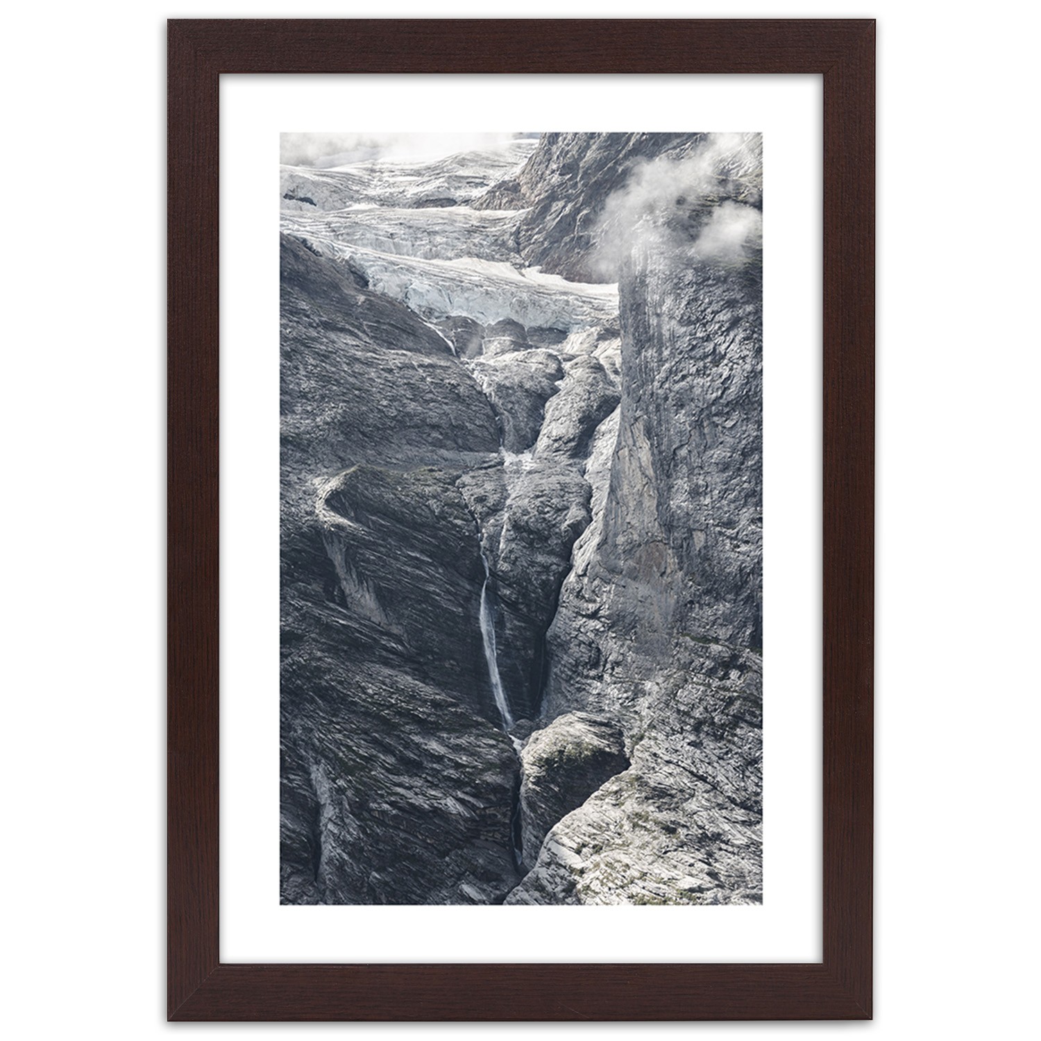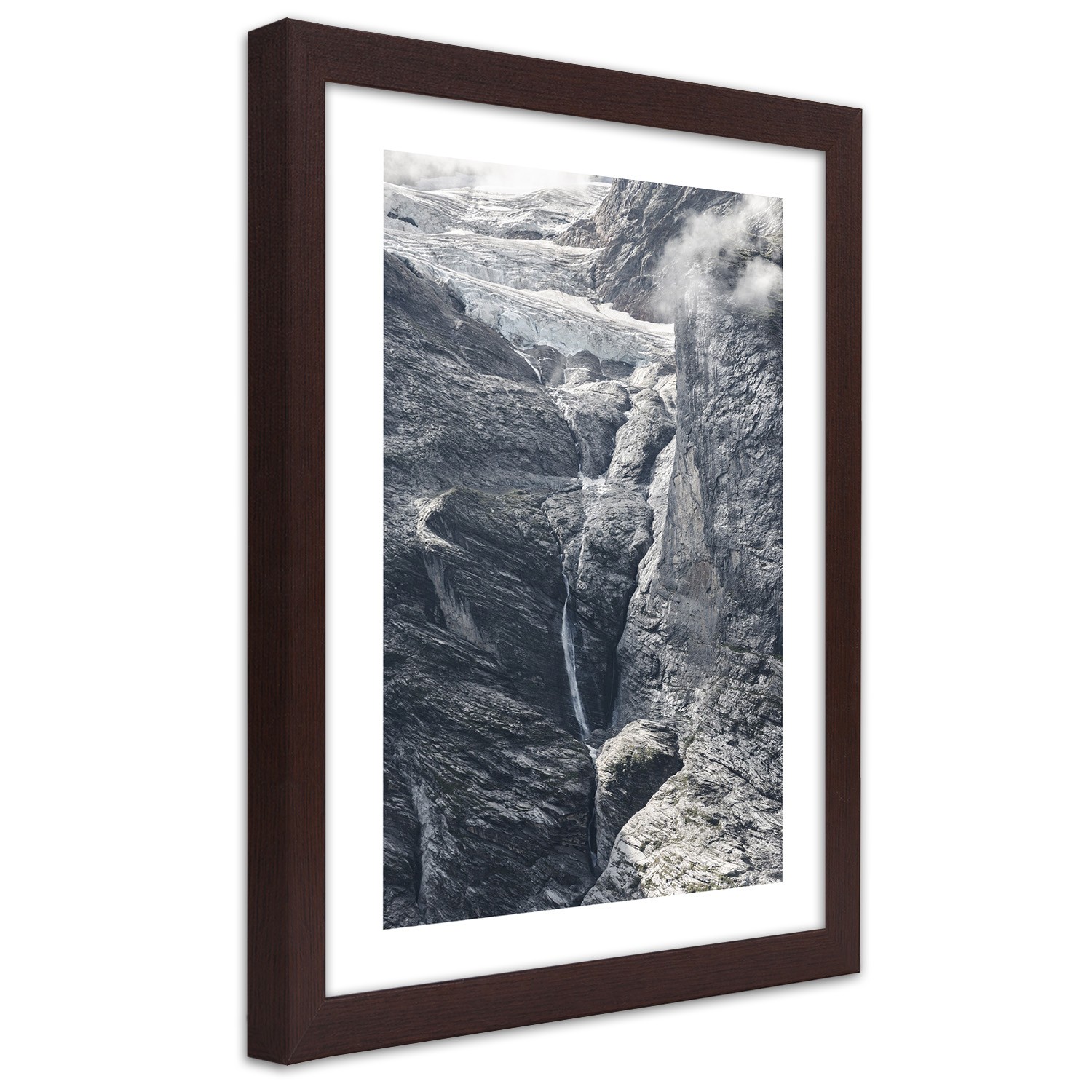 Picture in brown frame, View on the rocks
