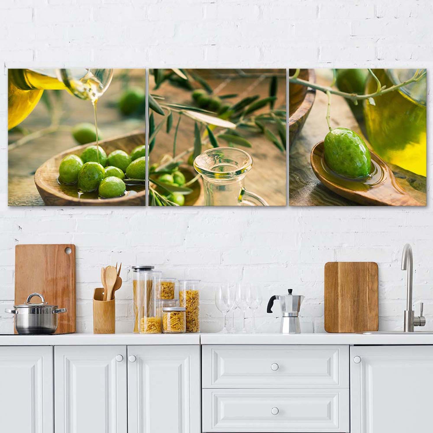 Informations sur le produit "Set of three pictures deco panel, Olive oil and green olives"