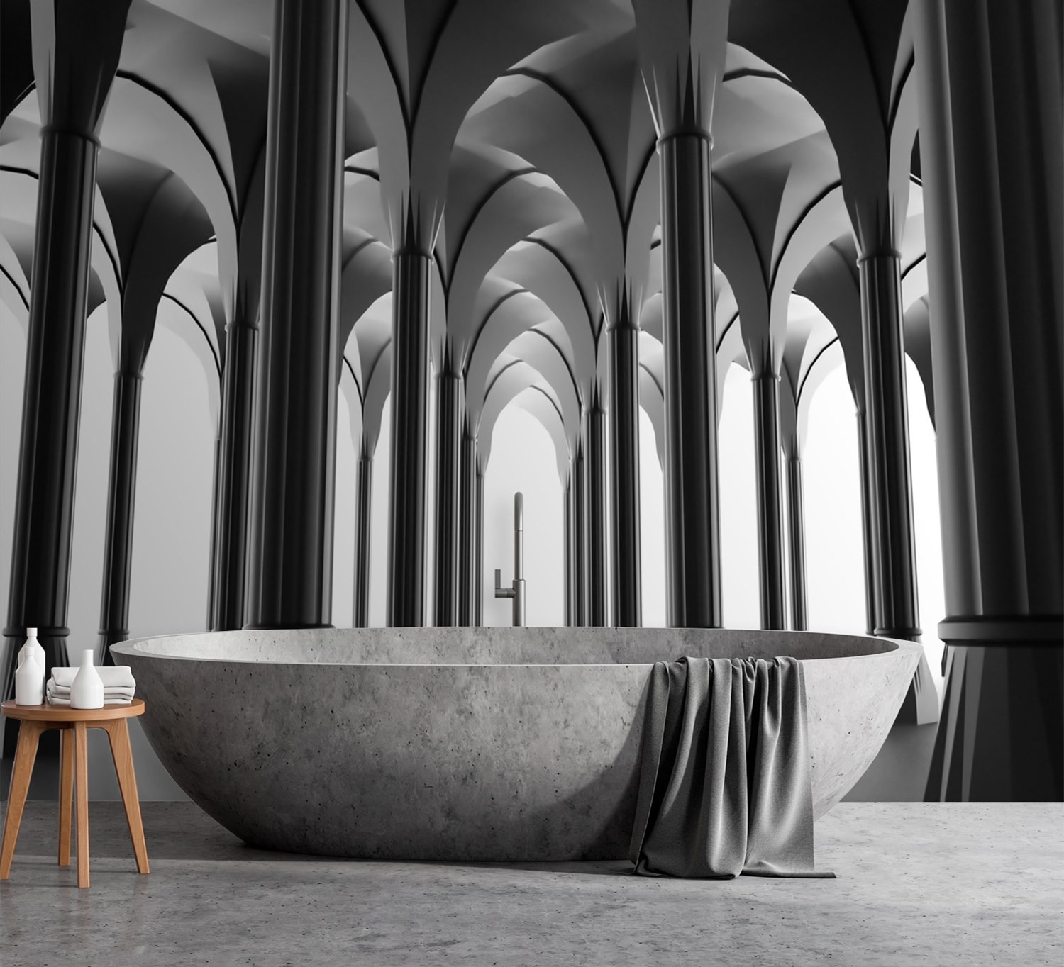 Papier peint imprimé sur toile avec colle finition de couleur gris et blanc