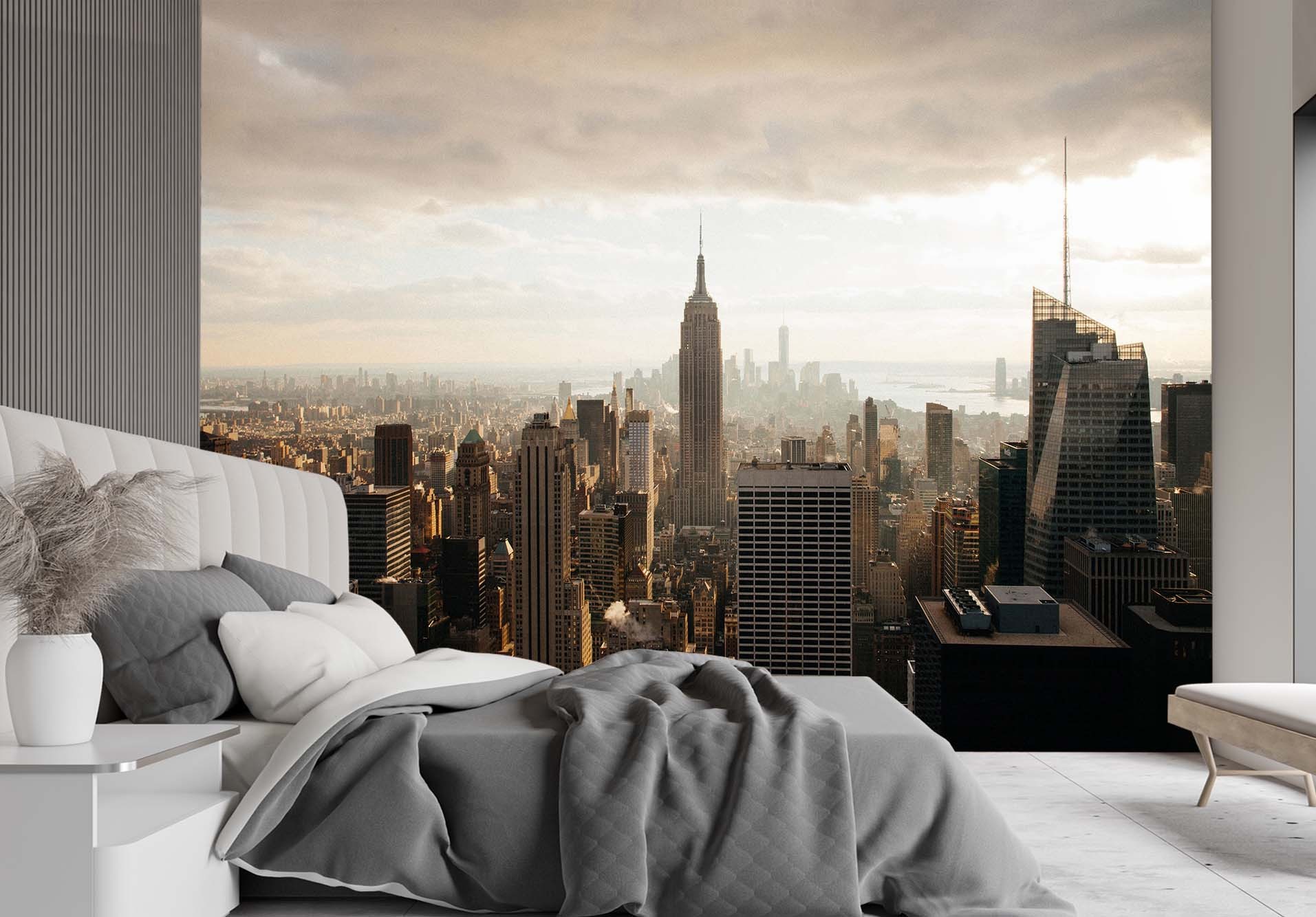 Papier peint rectangulaire avec image de manhattan imprimée sur toile avec finition rouge