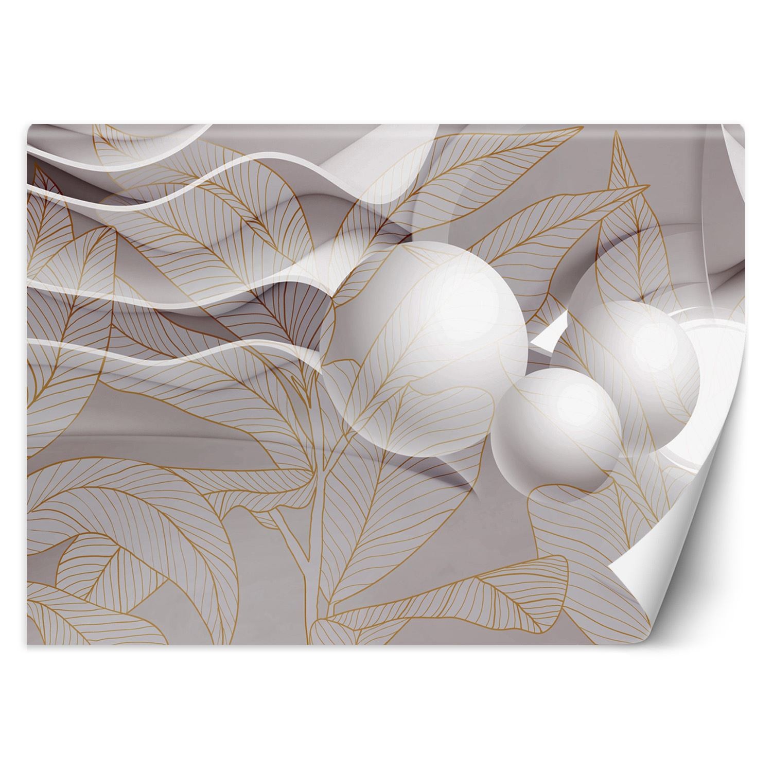 Papier peint rectangulaire résistant à l'eau imprimé sur toile feuilles d'or et boules 3d