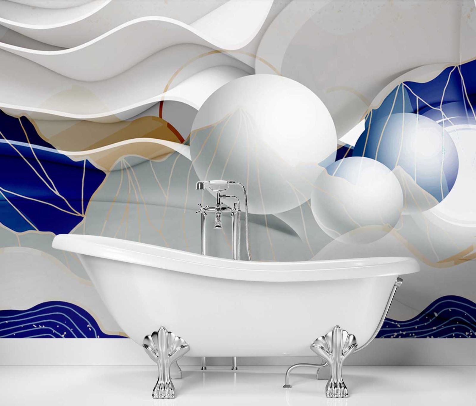 Description et caractéristiques - Papier peint sphères imprimé sur toile art classique colle incluse