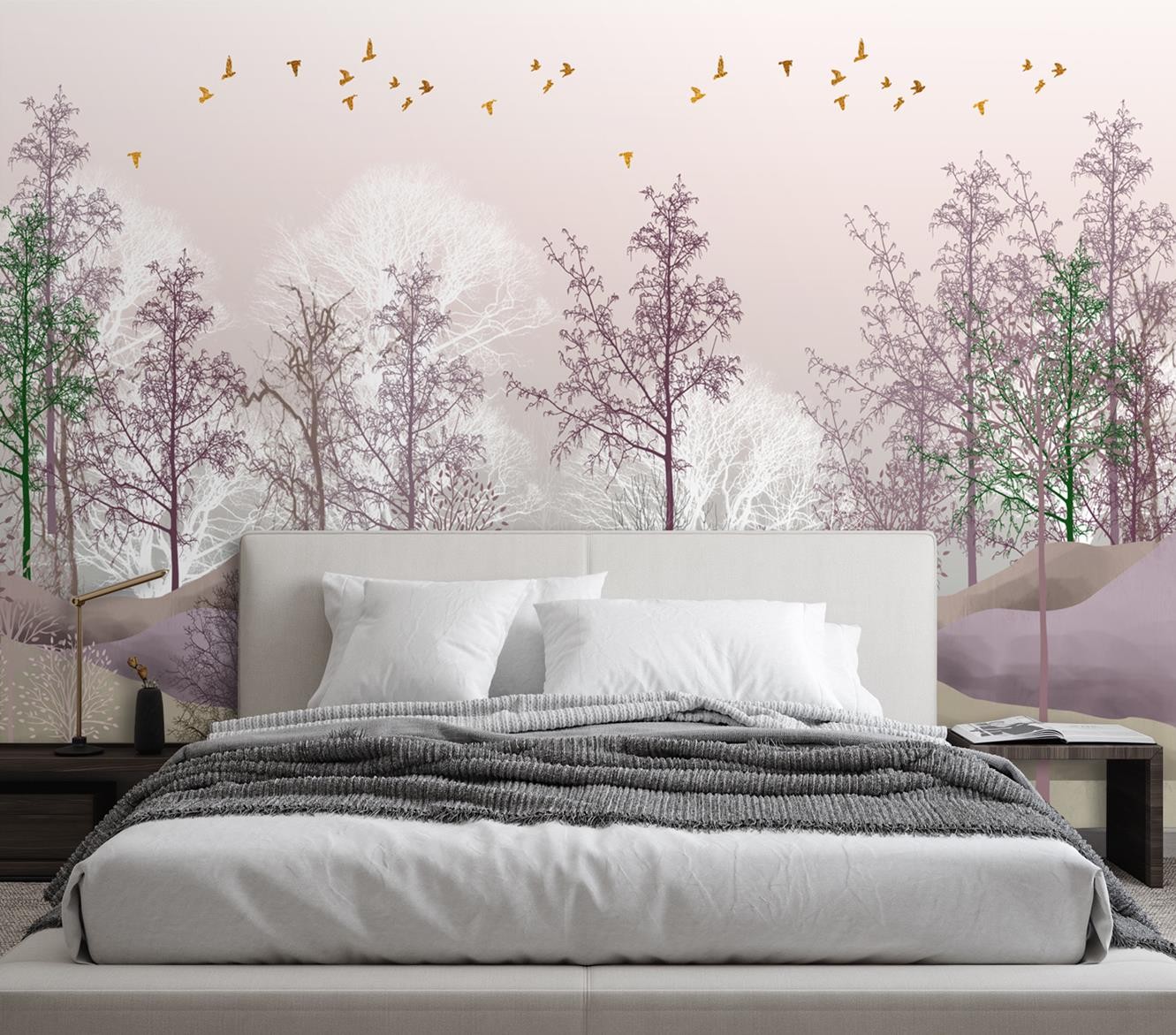 Photo murale en toile décorative avec aspect 3d motif oiseaux dans le bois