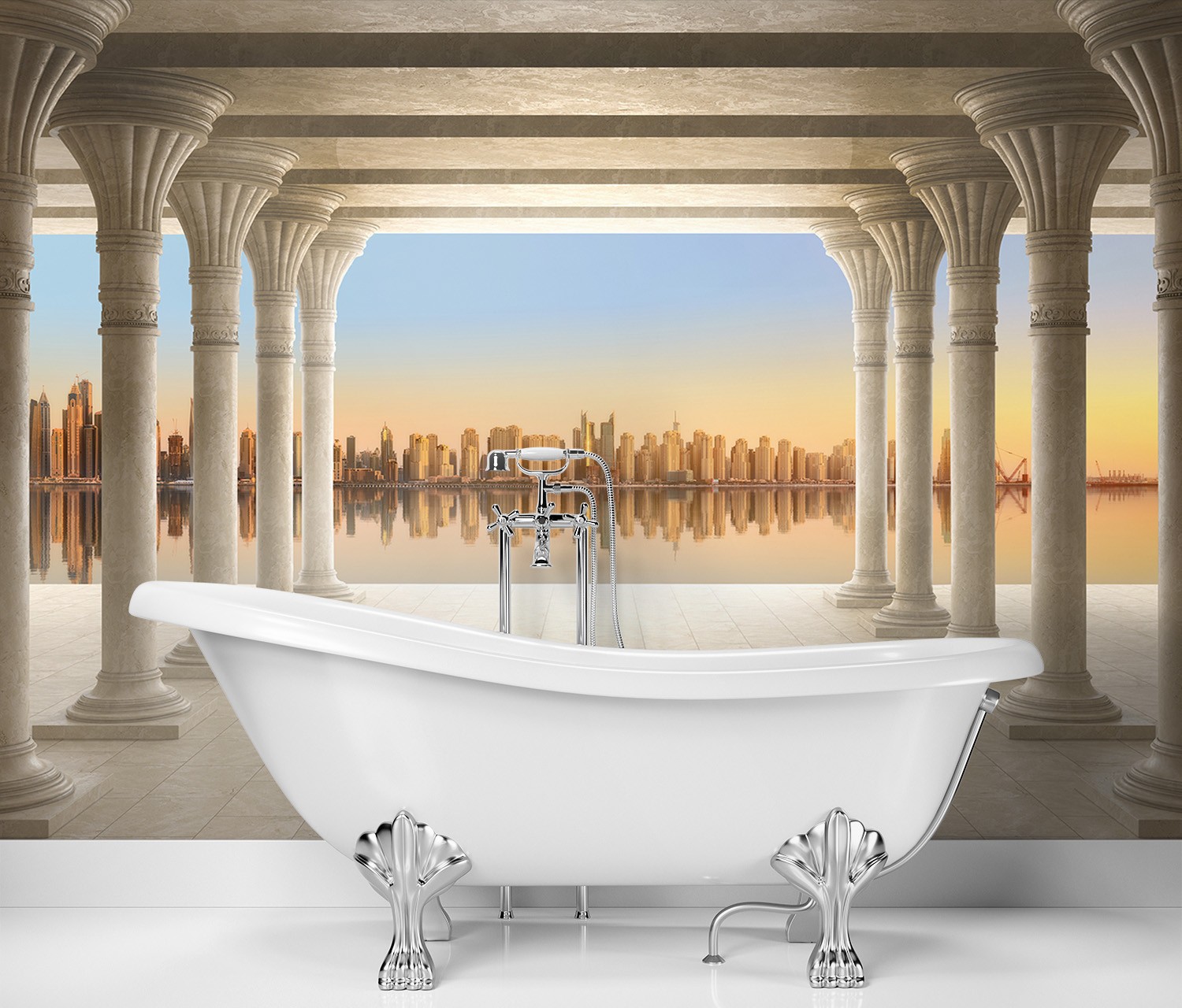 Photo murale pour salon au style moderne colonnes avec vue sur la ville