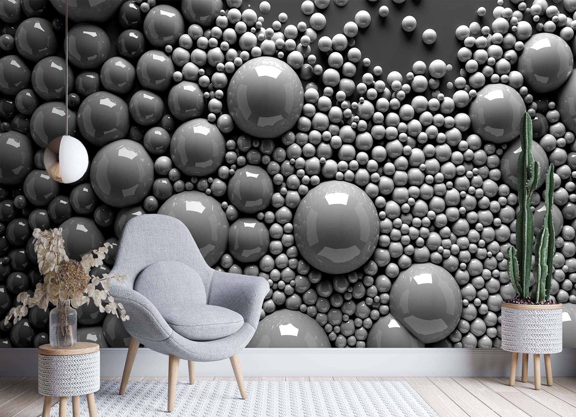 Photo murale pour salon avec image avec image de sphères 3d abstraites de couleur grise