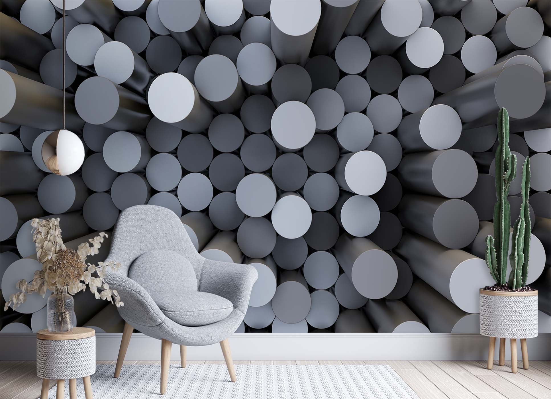 Photo murale pour salon avec image de cylindres tridimensionnels de couleur grise