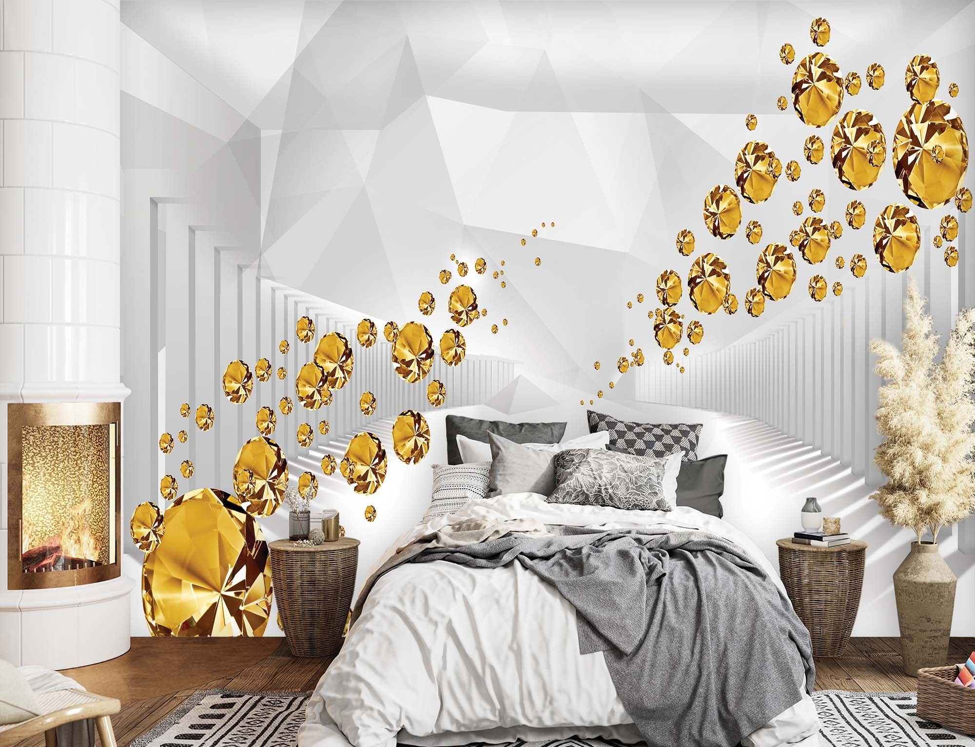 - Photo murale avec image de gemmes dorées dans un tunnel abstrait.
