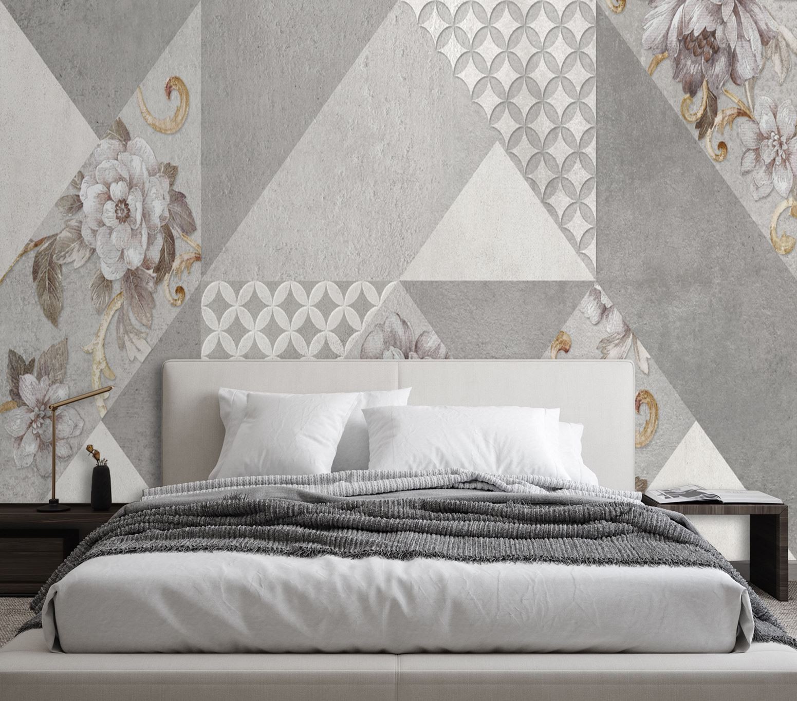 - Photo murale décorative moderne : fleurs sur texture grise.
