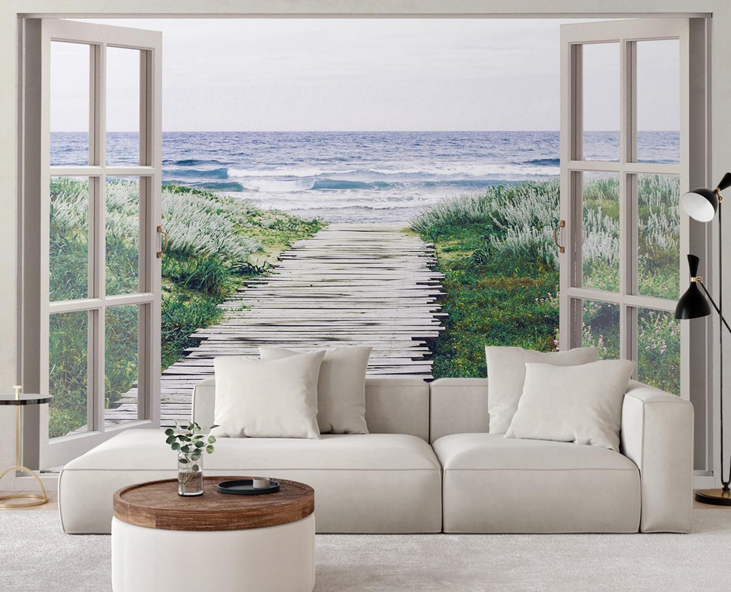 Description et caractéristiques - Photo murale pour salon moderne vue de la plage depuis la fenêtre