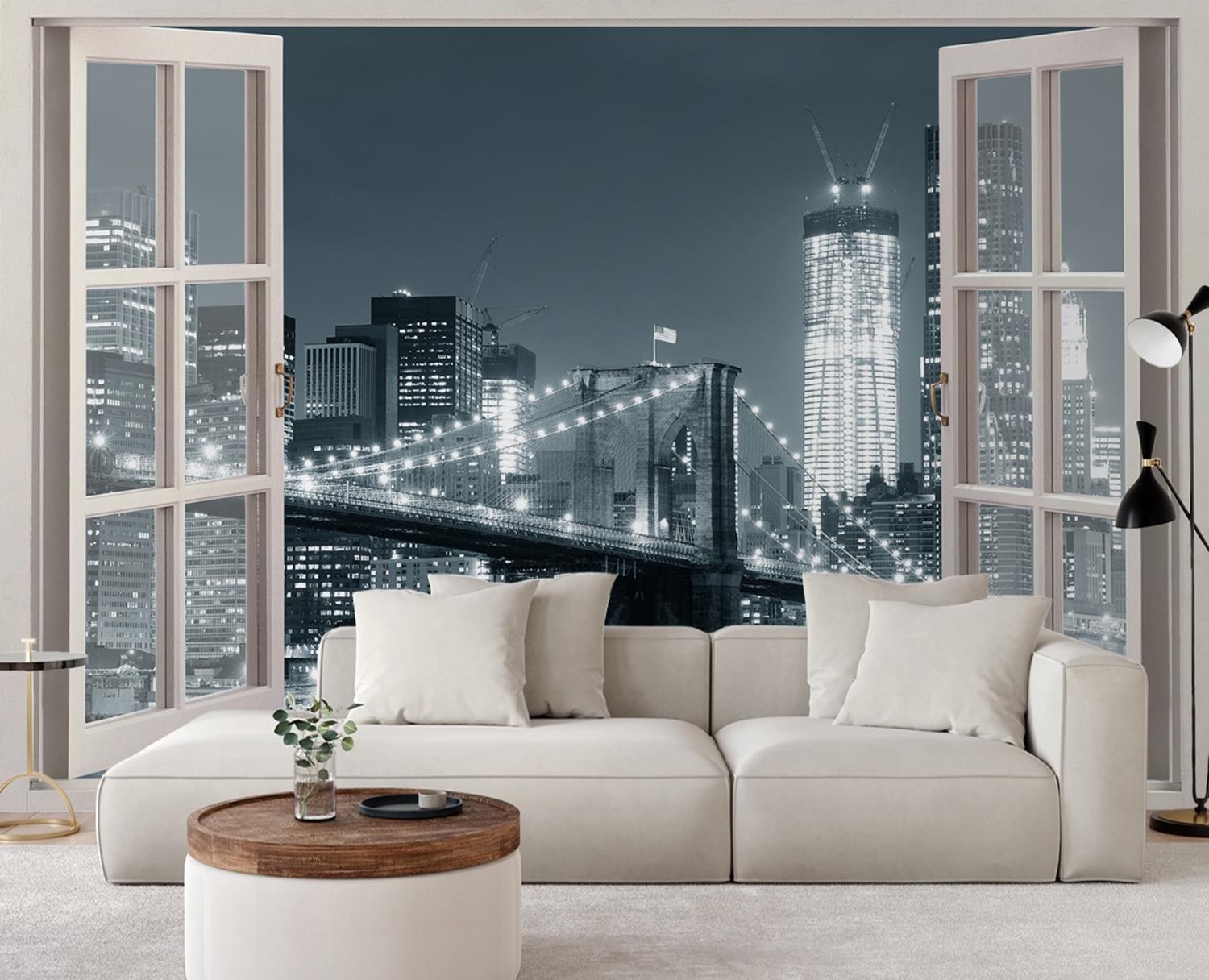 - Photo murale décorative moderne : pont de Brooklyn à New York vu depuis la fenêtre.