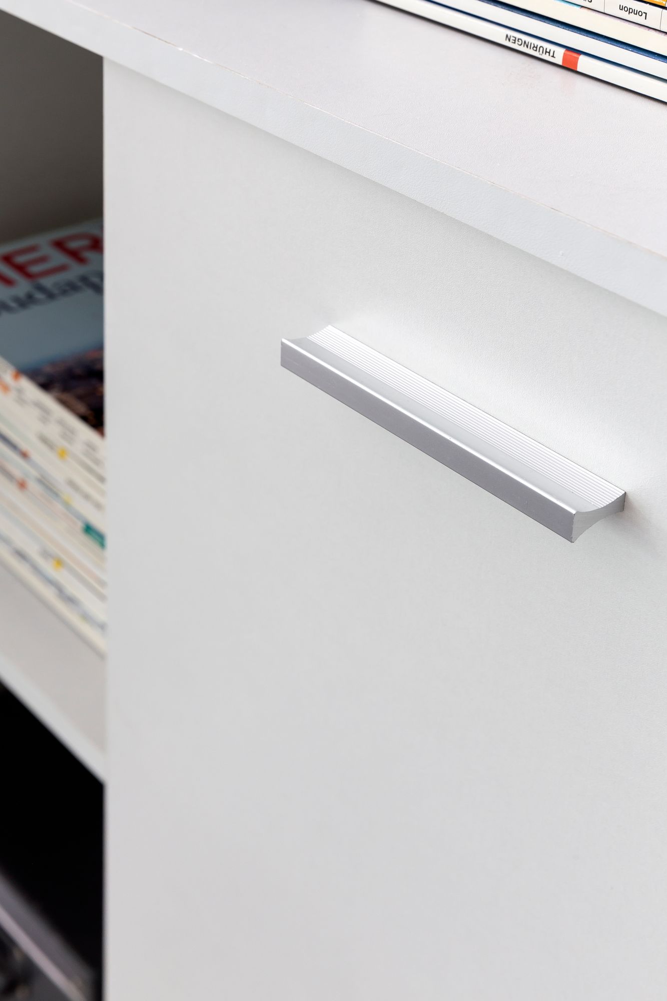 - Matériaux : panneaux de particules mélaminés, métal (poignées et charnières), pieds en plastique