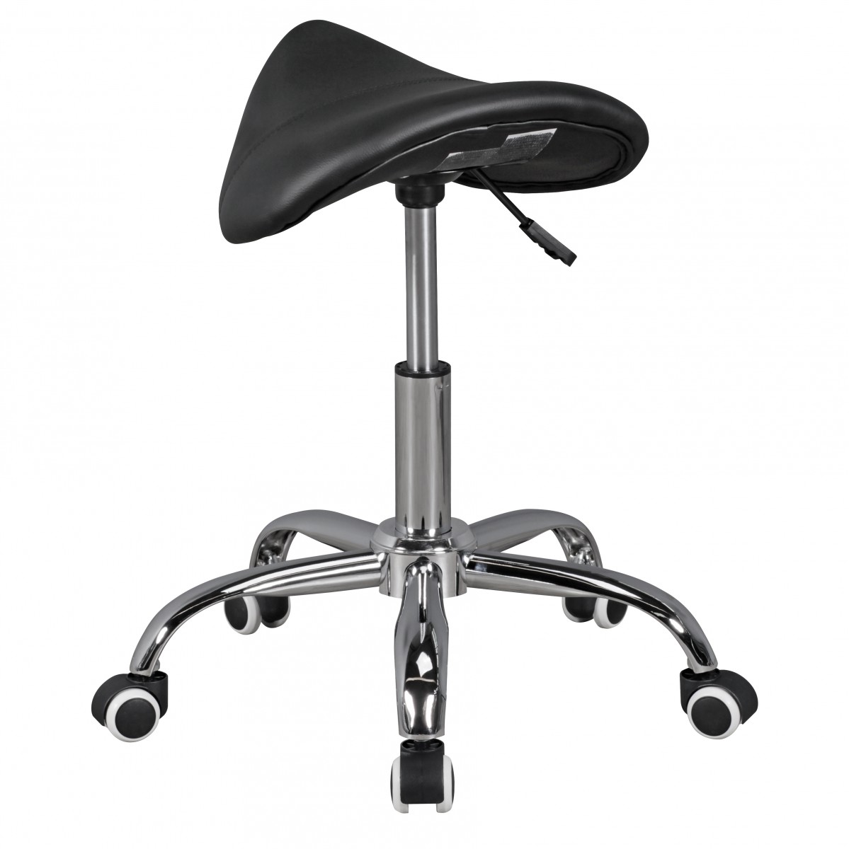 Tabouret selle MENTON noir avec revêtement en cuir synthétique | Réglable en hauteur 48-60 cm | Siège 38x35 cm