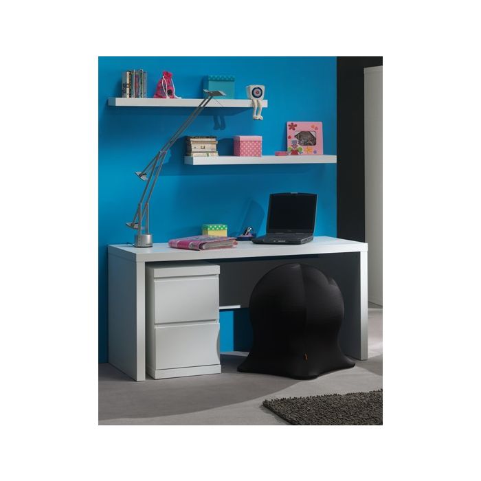 This desk in white of the LARA collection is made out of lacquered MDF and solid pine. The desk has a spacious worktop and there's an optional trolley that can be added for extra storage.