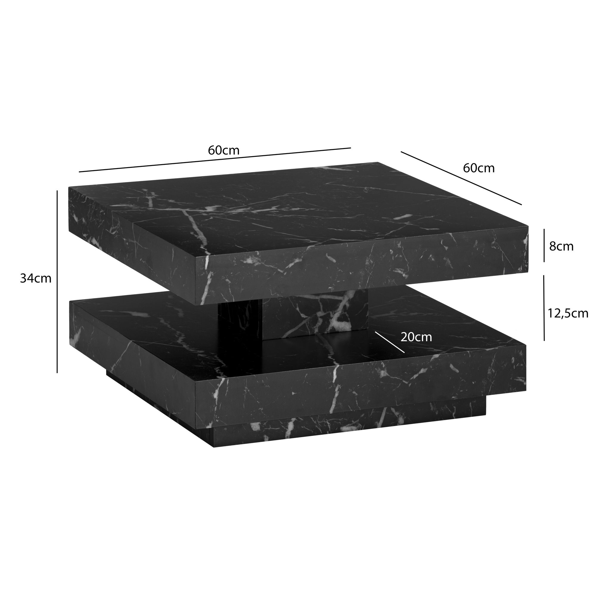 Informations sur le produit "Table basse carrée en MDF folié | Noir marbré | 60x60x34 cm"