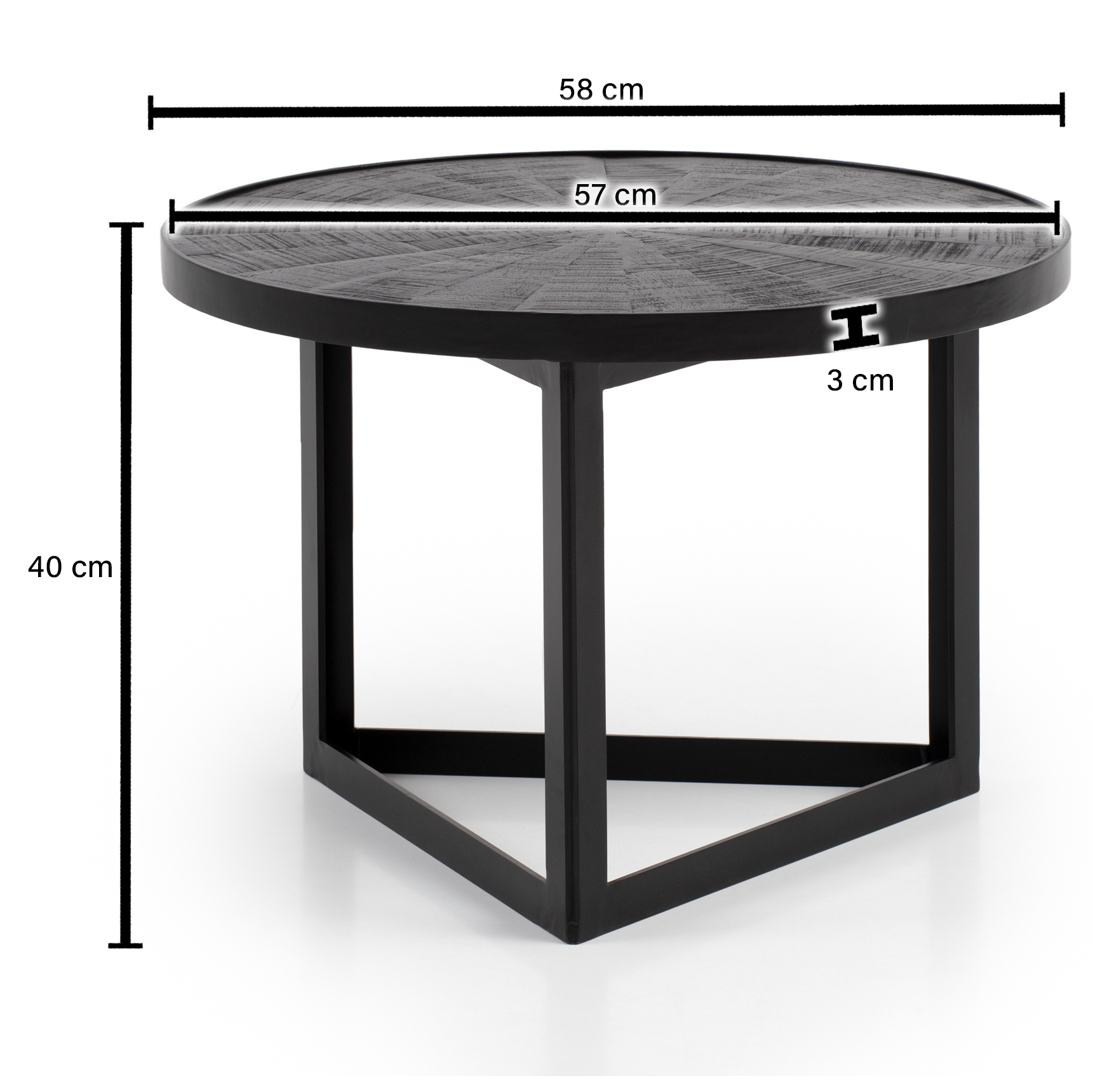 Informations sur le produit "Table basse ronde en bois massif de mangue et métal noir | Noir | 58x58x40 cm"