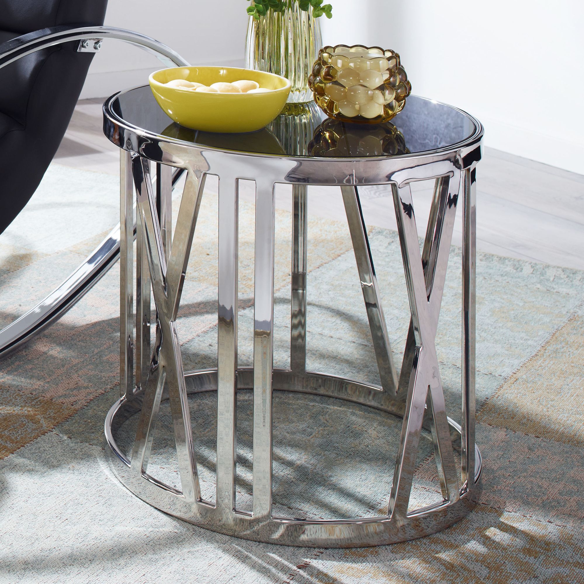 Table d'appoint 45 x 45 x 44 cm Table d'appoint Verre Métal Argent, Petite Table de canapé Ronde, Table de Salon Moderne, Table Basse Hauteconception